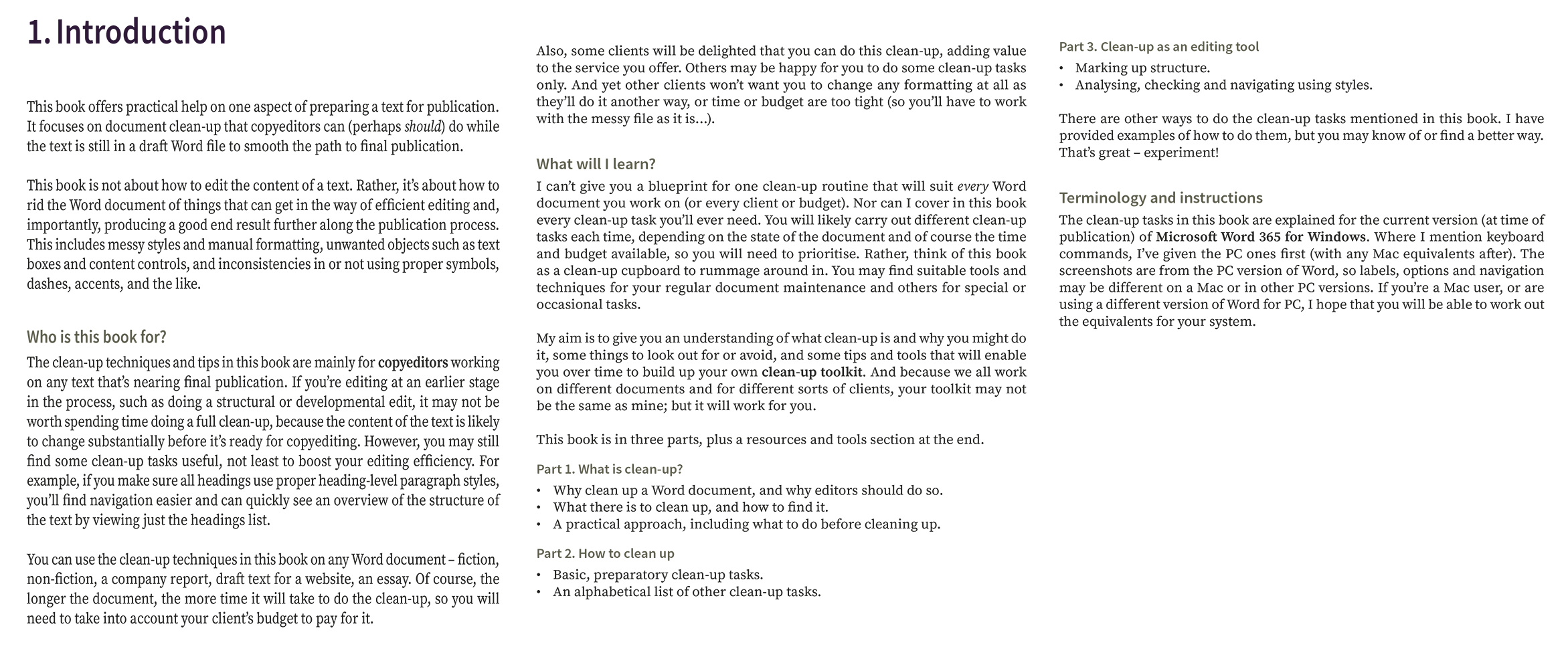 This book is about how copyeditors can clean up a messy Word document in preparation for publishing. Learn how to rid a text of things that get in the way of efficient editing and, importantly, of producing a good final publication, whether that’s in Word itself, in a layout program such as InDesign or as digital content. The techniques and tips in this book will help editors to build a clean-up toolkit so that you waste less time wondering why Word is ‘misbehaving’, allowing you to focus on fixing the words.